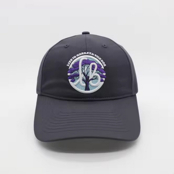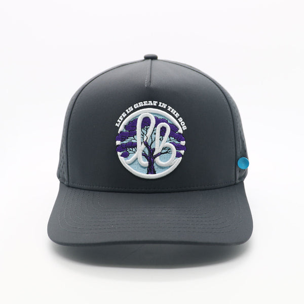 The hats feature LB908 Magazine's tag line, "LIFE IS GREAT IN THE 908". Under the  tagline is our signature cursive LB logo with the infamous jacaranda tree intertwined through it.