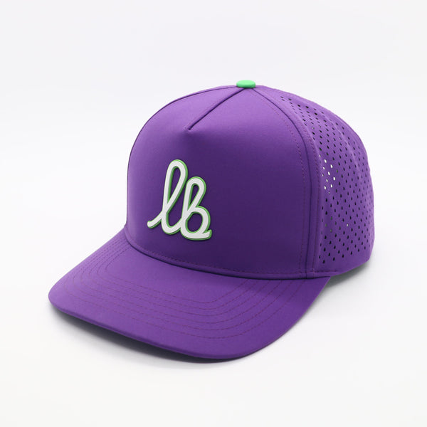 This unisex hat features a raised rubber signature LB logo and laser cut breathable perforations to keep cool. A moisture-wicking sweatband absorbs sweat for a dry and comfortable fit. A curved bill and a snapback closure for an adjustable fit.